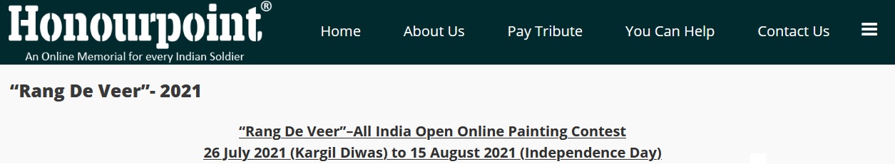 “Rang De Veer”–All India Open Online Painting Contest 26 July 2021 (Kargil Diwas) to 15 August 2021 (Independence Day)