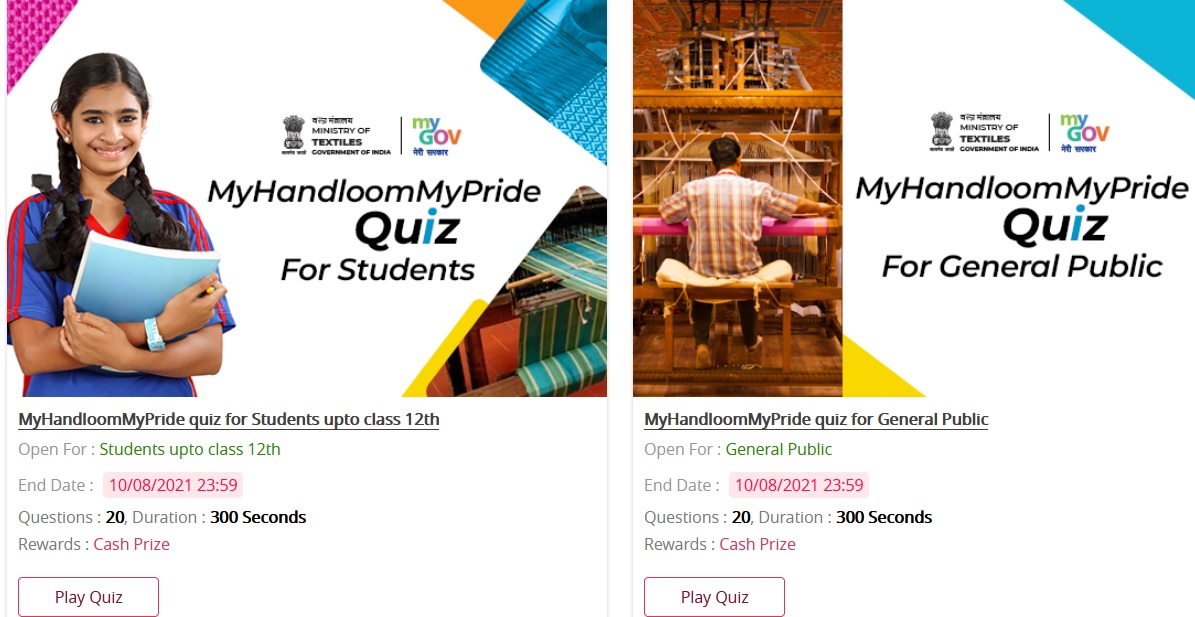Website : https://quiz.mygov.in/quiz/my-handloom-my-pride/