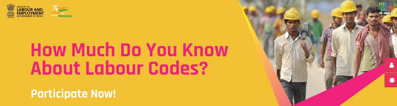 To commemorate 75 Years of India’s Independence and as a part of the ongoing ‘Azadi Ka Amrit Mahotsav’, Ministry of Labour and Employment is conducting a quiz on the Labour codes. Inviting all citizens to come forward and participate.
