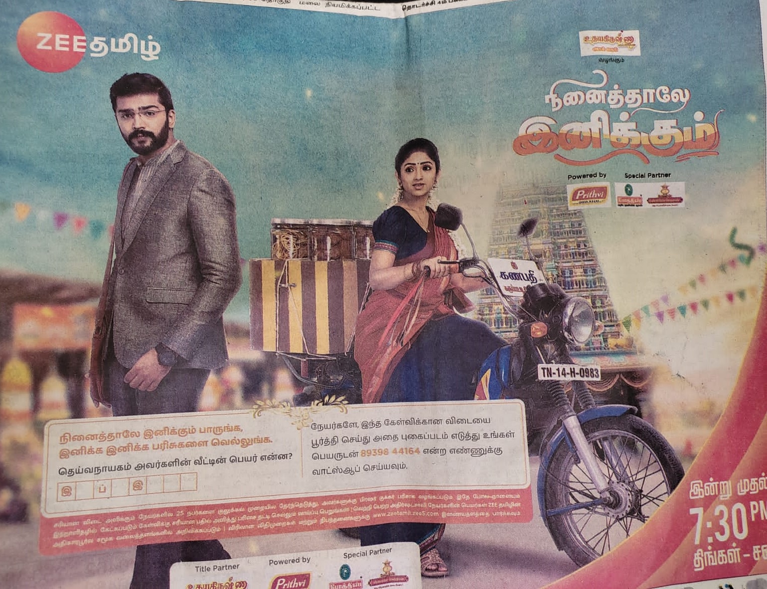 Zee Tamil Ninaithale Inikkum Serial WhatsApp Contest 2021. Answer the simple questions to win Pressure Cooker.