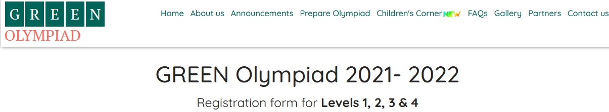GREEN Olympiad 2021- 2022 Registration form for Levels 1, 2, 3 & 4