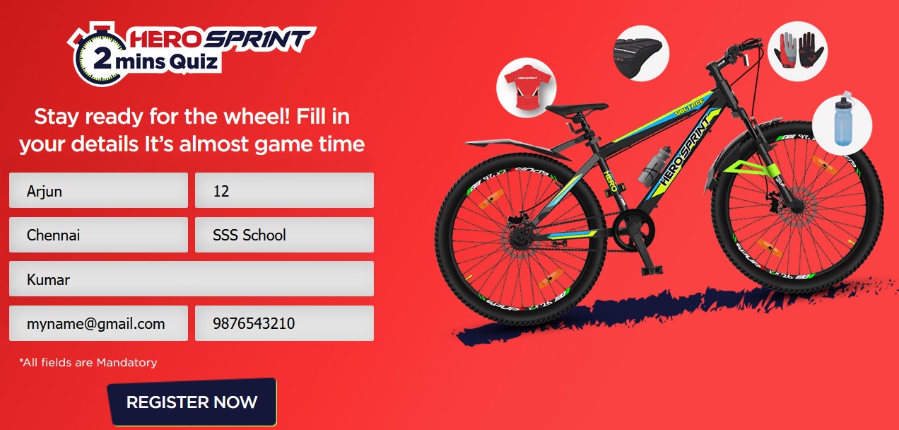 Participate and get a chance to win Hero Sprint Cycle and many cool accessories*.