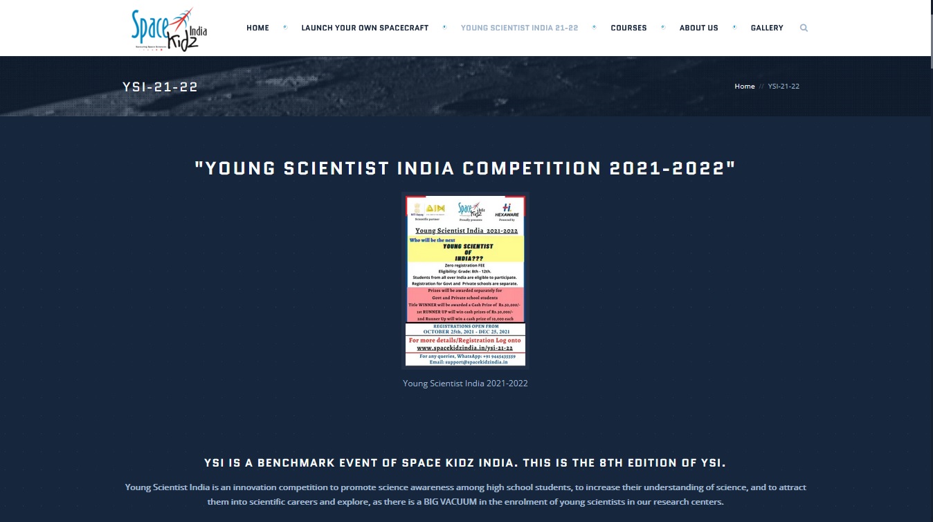 To Apply For Spacekidz Young Scientist India (YSI) competition, just follow the below steps