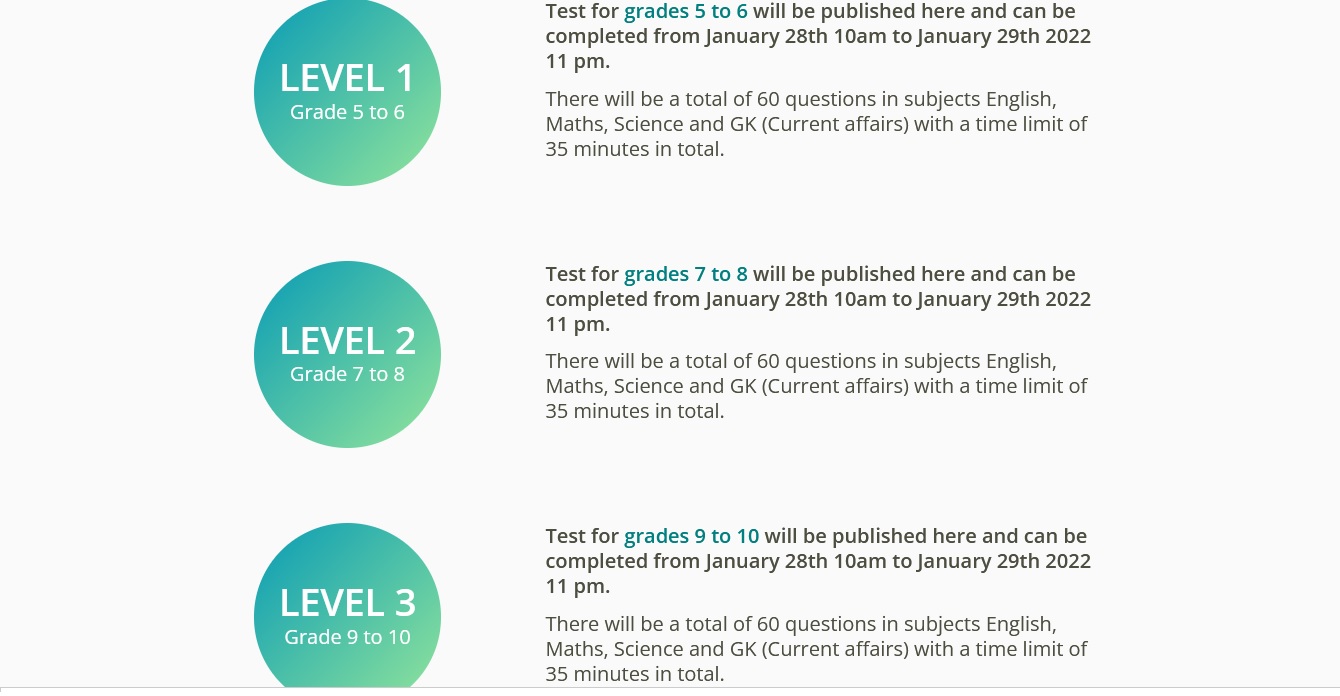 ** Test for your class level will be available on the “Learnathon tests” section on the set dates (January 28th to January 29th 2022) and also an email will be sent to participants before the contest begins!