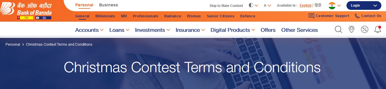 Website : https://www.bankofbaroda.in/christmas-contest-terms-and-conditions