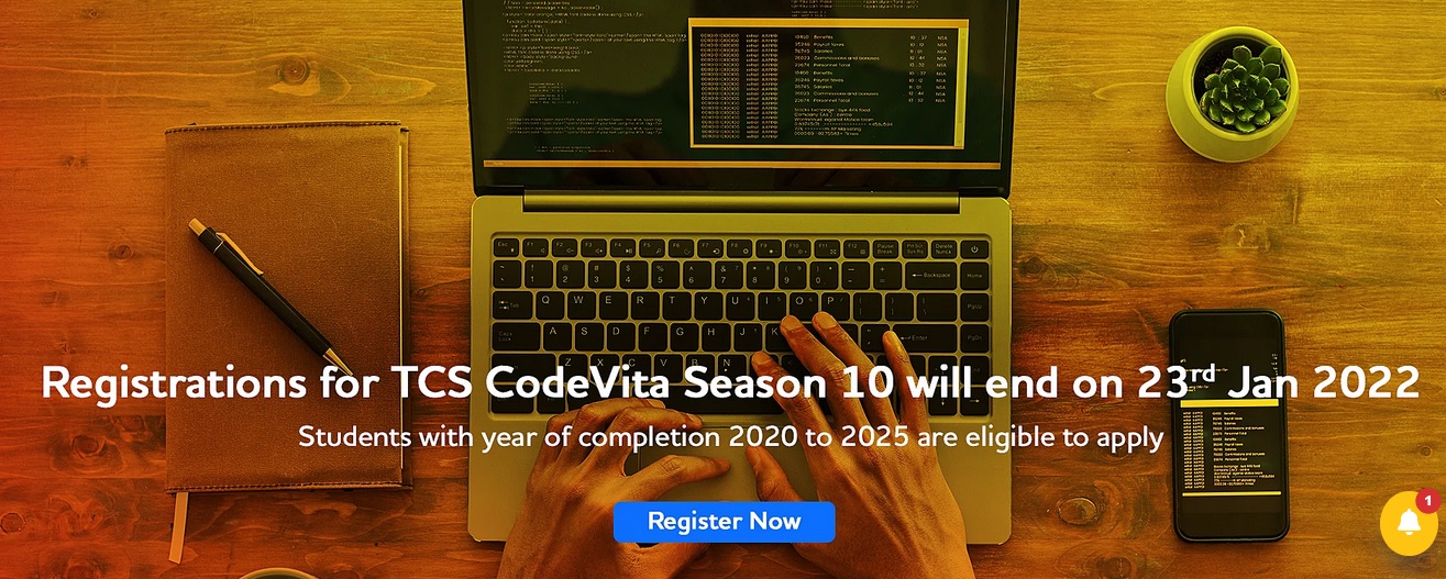 Last date to register for TCS CodeVita Season 10 is 23rd January 2022.