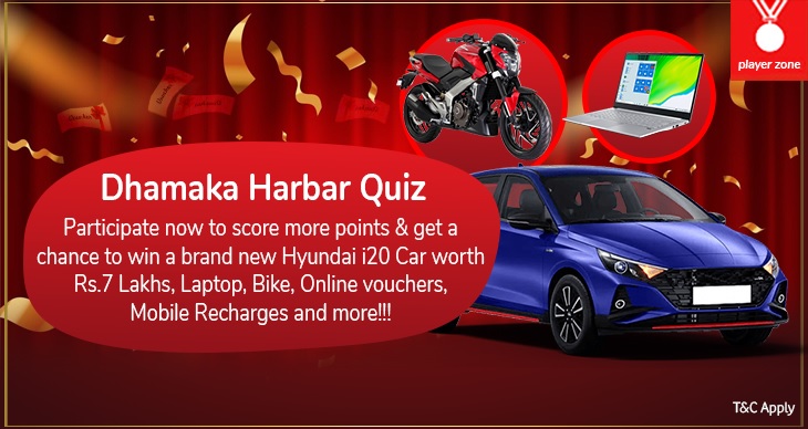 The Airtel Winner Zone Dhamaka Harbar Quiz is organised by OnMobile Global. Winners Zone Member must be of at least 18 years of age and resident of India. Winners Zone Member must be an existing Airtel Subscriber. Dial – *646*1# and follow the instructions to participate in the quiz. The mega bumper Prize is CAR worth Rs 7 lakhs. The Quiz begins on 2nd March 2022 and ends on 30th May 2022.