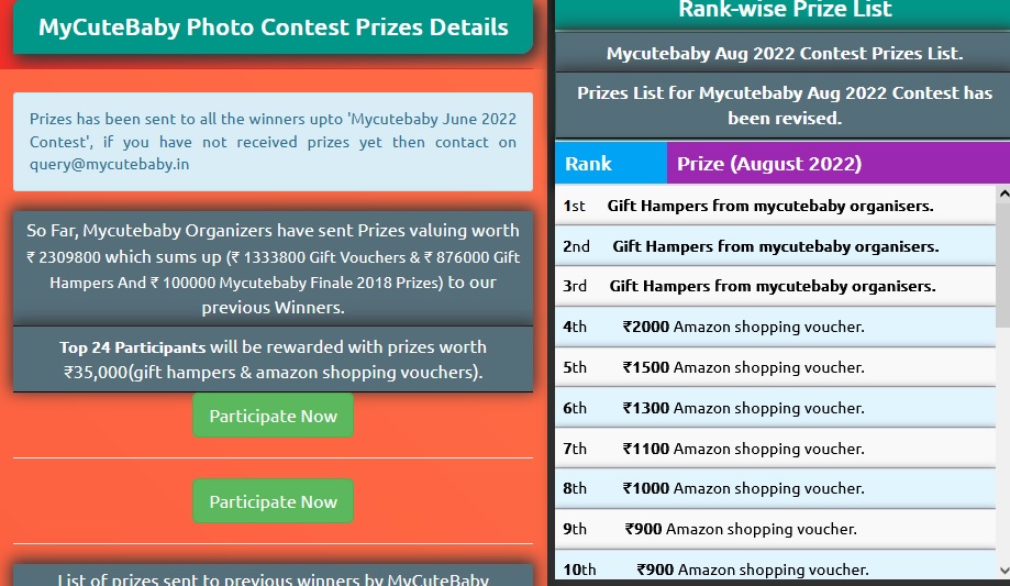 ** This is a free competition and the prize will be there but the value of prize can vary from month to month. mycutebaby.in reserves all the right to increase and decrease the value of prize(within voting pediod).