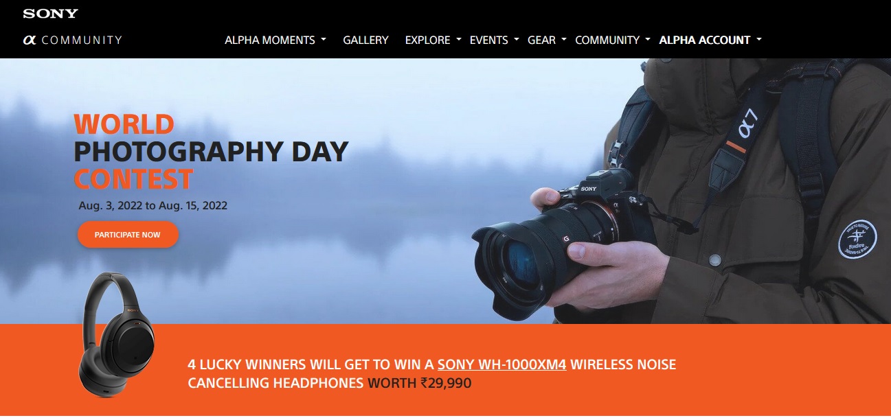 Sony India Alpha World Photography Day Contest is organised by Sony India Private Limited. Participants must be citizens of India residing in India. The Four winners against each category will be selected by the judges who stand a chance to win WH-1000XM4 which is worth Rs 29,990/- . The duration for registering the form is between 03rd August, 2022 to 15th August, 2022. After this time period no entries shall be entertained.