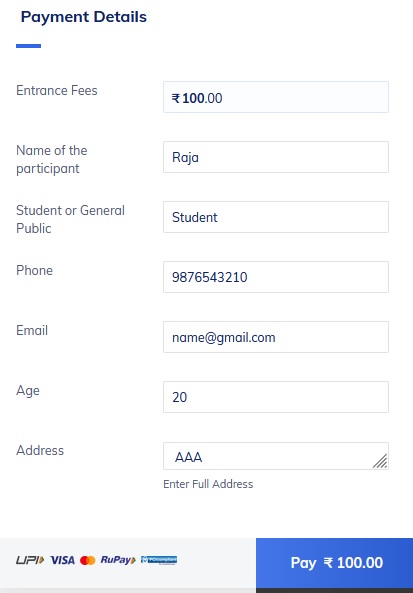 Mode of payment and Entrace fees: