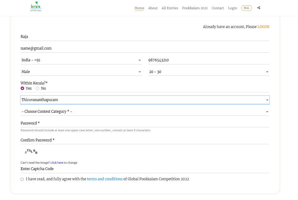 To Participate in the Global Pookkalam Competition, Follow the below steps