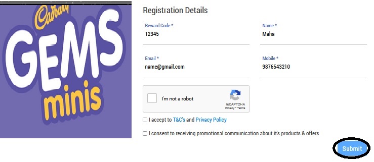 To Register for Cadbury Gems Minis Offer, Follow the below steps