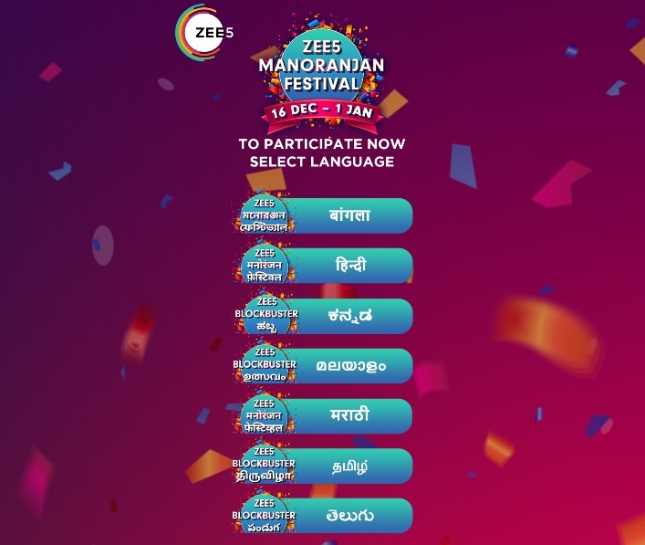 “Zee5 Manoranjan Festival” is a contest (“Contest”) which can be accessed on Zee5 platform operated by ZEE Entertainment Enterprises Limited (“ZEEL”). The Participant(s) will have to spin the wheel and mention their favourite Zee5 celebrity amongst the ones mentioned and provided under the Contest. The lucky Winners shall be announced before 31 January 2023 via SMS. The last date to participate in Zee5 Manoranjan Festival Spin To Win Contest is 1st January 2023.