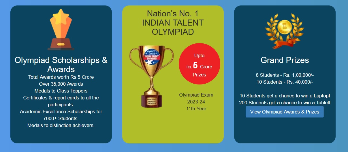 Olympiad exams are offered by Indian Talent Olympiad, a well-known name in the field of education. It conducts online as well as offline test. It allows individual participation along with school participation. The online tests are conducted on any smart phone or tablet. These are weekly test series that students can attempt from home. The annual school Olympiad is set to be conducted in December and February.