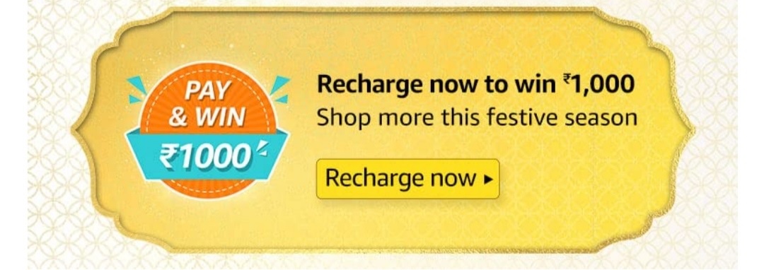 Pay Bills or Recharge and Win 1000 (“Contest”) is provided by Amazon Pay (India) Private Limited and is made available by Amazon Seller Services Private Limited on the Amazon mobile site and mobile application. An Eligible Participant will be eligible to win only 1 Prize only. The Contest will commence on October 2, 2023 and end on October 6, 2023.