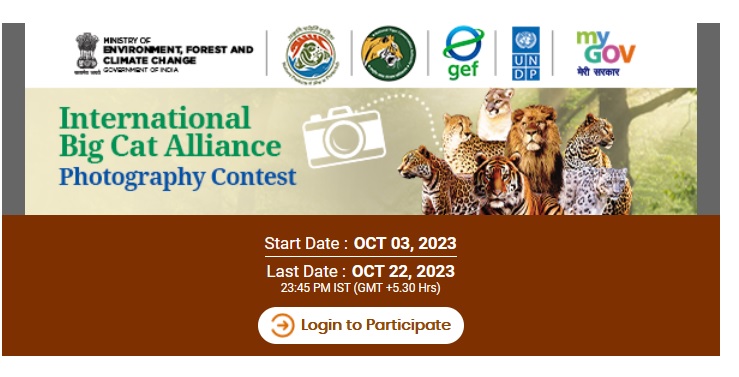 Hon’ble Prime Minister of India Shri Narendra Modi launched the International Big Cat Alliance (IBCA) in Mysuru, India on 9 April 2023 at an event commemorating 50 years of Project Tiger in India, to create a global movement for enhancing the conservation of seven big cat species, viz. tiger, lion, leopard, snow leopard, cheetah, jaguar, and puma. Last date of contest is 22nd October 2023.
