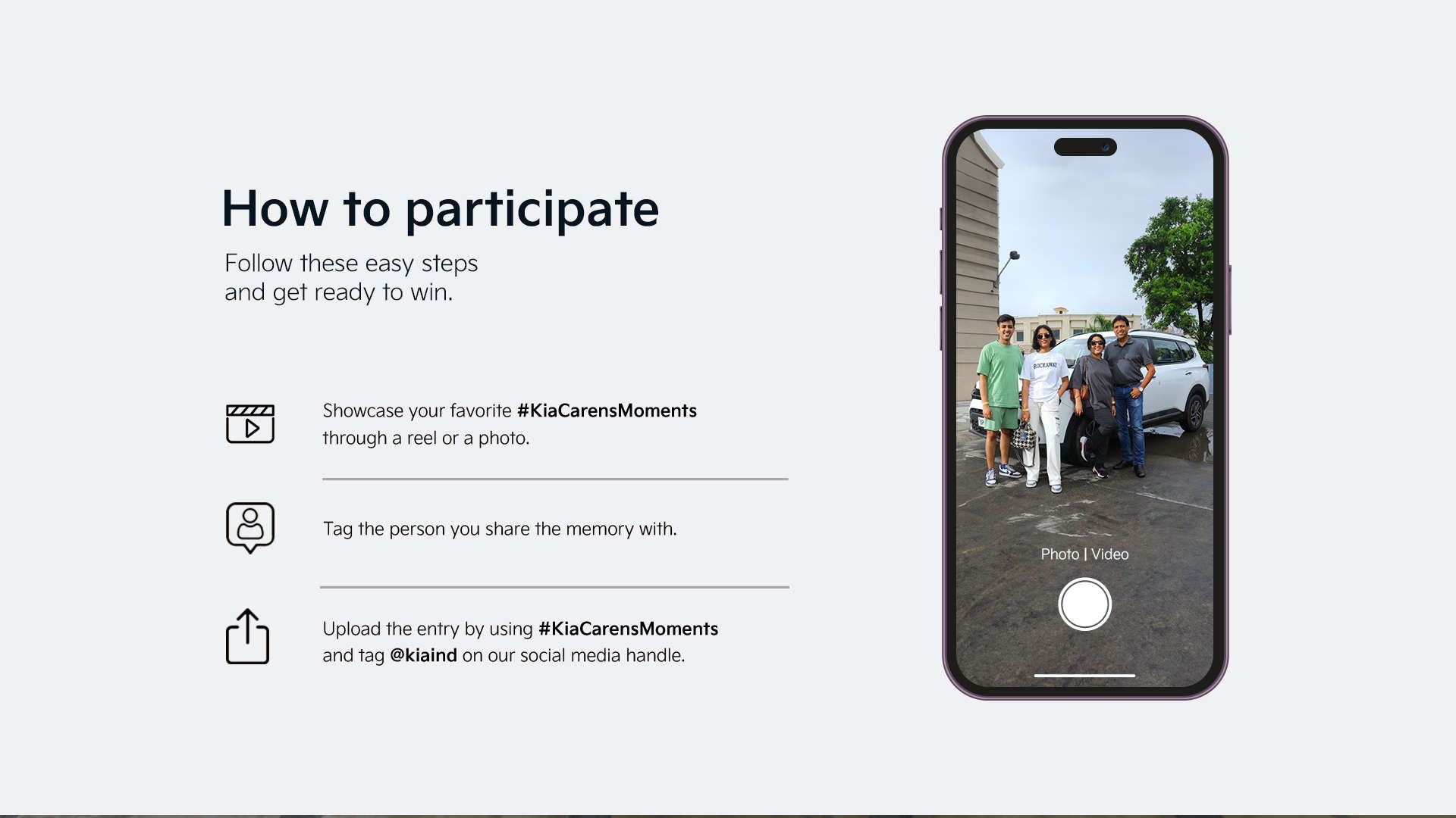 ** Upload the entry by using #KiaCarensMoments and tag @kiaind on their respective social media channel/Platforms.