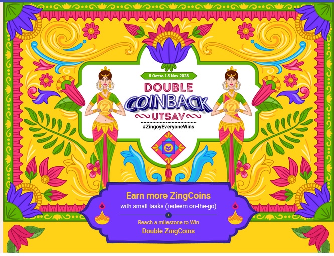 ** Opt-in anytime for the ‘Double Coinback Utsav’ during the campaign period and all your ZingCoins collected from 5th Oct onwards will be considered (except above (1-3 listed above).