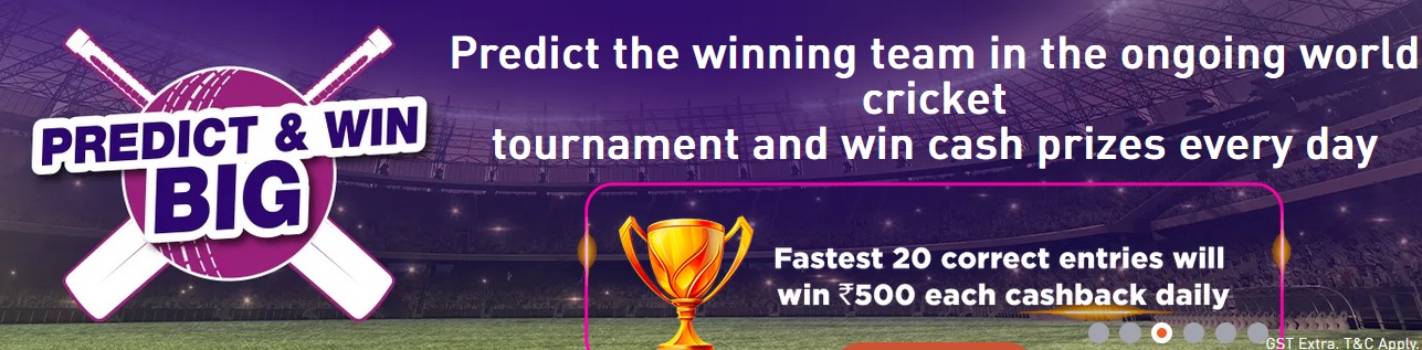 Predict & Win Contest conducted by Dish TV India Limited. The Contest shall be open for the active Subscribers of the Company using only ‘dishtv’, d2h & zing super 2-in-one box connection as on the date of their participation. Winners will be notified through SMS/Whatsapp on their registered mobile number. The Contest shall run during the period from 4th Oct to Nov-19 2023.