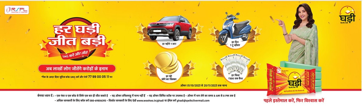 Har Ghadi Jeet Badi Contest 2023 is organized by RSPL Limited. Participant(s) must be a citizen of India, residing in India. The winner stands a chance to receive cash prize up to Rs 500 OR 1 one gram Gold coin OR 1 two-wheeler OR 1 car. The Program is valid only in India from 20th September 2023 and end at 30th November 2023.