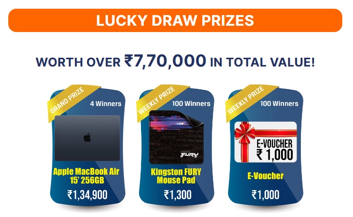 ** Lucky draws will be purely computer-generated and Kingston Technology Far East Corp will not have any role/ personal interest in picking the winners.
