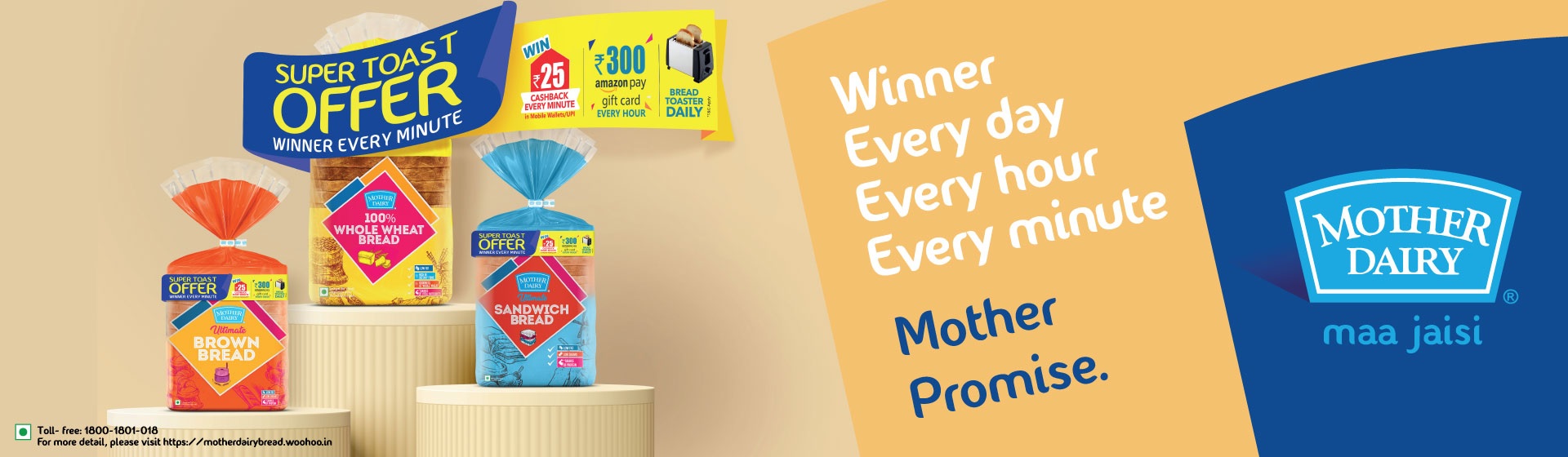 ** Winners will receive a congratulatory SMS along with the microsite link. https://motherdairybread.woohoo.in/