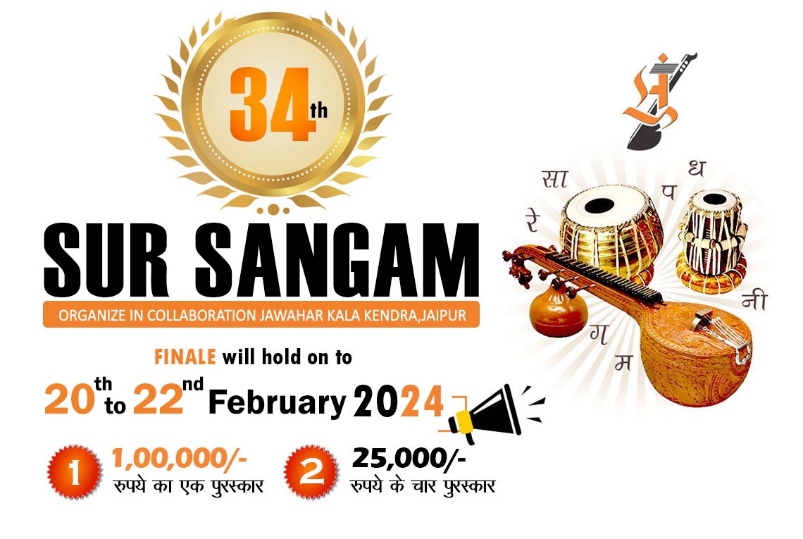 The 34th Sur Sangam Sansthan Singing Competition is organized in Collaboration Jawahar Kala Kendra, Jaipur Rajasthan. It is a national level competition in which talented singers from across the country participate. The competition has categories for singing in various forms of Hindustani classical music, bhajans, ghazals and folk music. Contestants between 16 to 25 age group can only participate in the competition. Last date for submitting audio files will be 10th January 2024. To participate in the competition, participants must apply online. Registration Fees for the competition are Rs. 500 which is non-refundable.