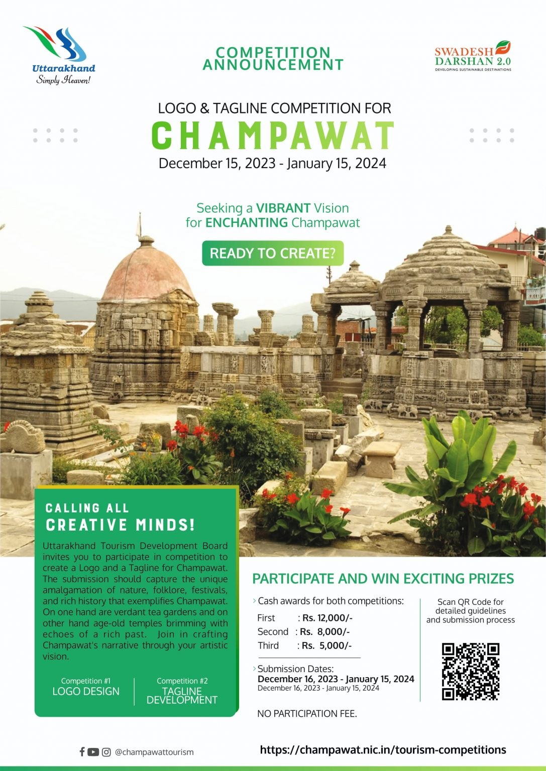 Uttarakhand Tourism Development Board in collaboration with Ministry of Tourism, Government of India’s Swadesh Darshan 2.0 invites entries for “Champawat” Tagline Compettion 2023. This is once in a life-me opportunity to participate in making “Champawat a Global Tourism Hub”.