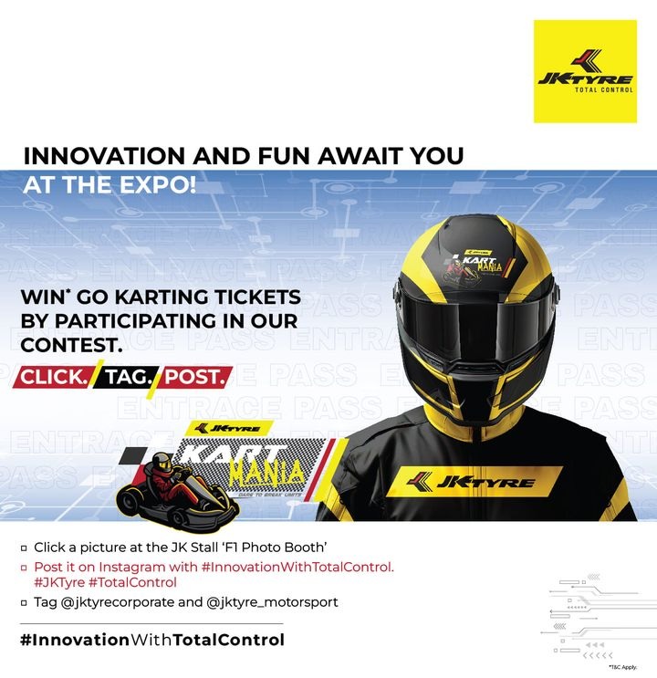 ** Tag @jktyrecorporate and @jktyre_motorsport and add #InnovationWithTotalControl #JKTyre and #TotalControl in your posts