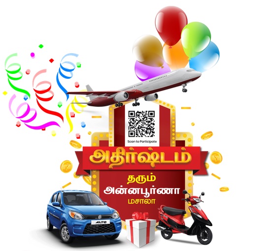 Parisu Mazhai Annapoorna Masala Slogan Contest 2024 is organized by Annapoorna. This Contest will be open to all individuals residing in Tamil Nadu. Only buyers of Annapoorna Masala Sambar Powder, Chilly Powder, Chicken Masala, Biryani Masala packs of 50 grams or 100 grams that has the QR Code with Mnemonic written on the front of the pack & Unique 12 Digit Code inside the pack are eligible to participate in the Contest. Buy Annapurna Masala, Win car, scooty, gold, silver coins.