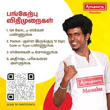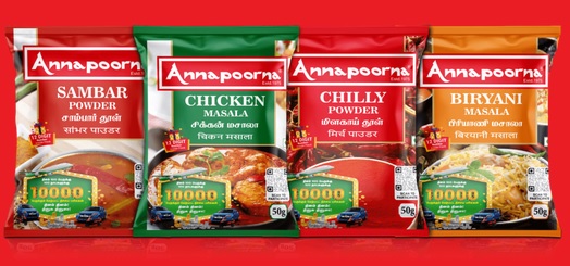 ** Only buyers of Annapoorna Masala Sambar Powder, Chilly Powder, Chicken Masala, Biryani Masala packs of 50 grams or 100 grams that has the QR Code with Mnemonic written on the front of the pack & Unique 12 Digit Code inside the pack are eligible to participate in the Contest.