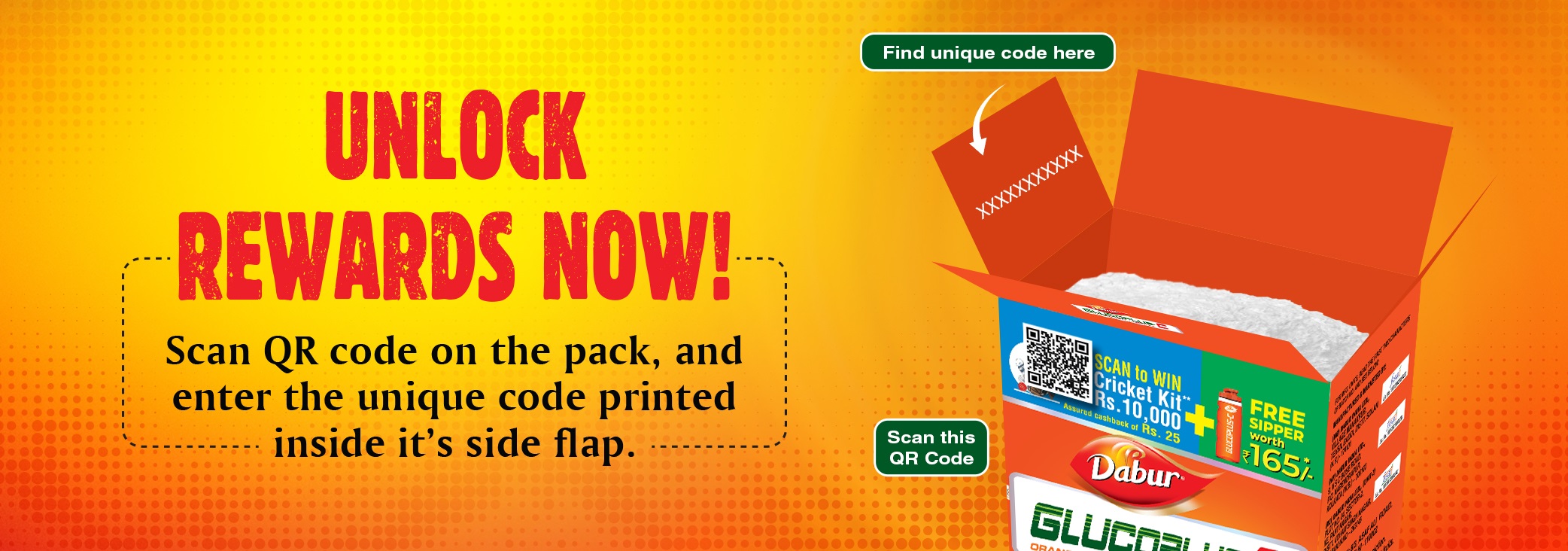 c. Participants will enter a unique code (code will be mentioned inside the flap of promotional Dabur Glucoplus-C mono-carton) along with other details to submit their registration.