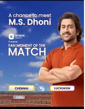 Orient Electric Fan Moment of the Match Contest 2024 is organized by Orient Electric. Only Indian residents who are of age 18 or above at the time of entering the Contest are eligible to participate in the Contest. This contest is only open for public profiles. The contest is only for Chennai matches. Participate in our Fan Moment of the match Contest and stand a chance to win merchandise and lucky winners will stand a chance to win a meet and greet with MS Dhoni. The Contest starts on 19th April 2024 Till The last match Chennai Team plays.