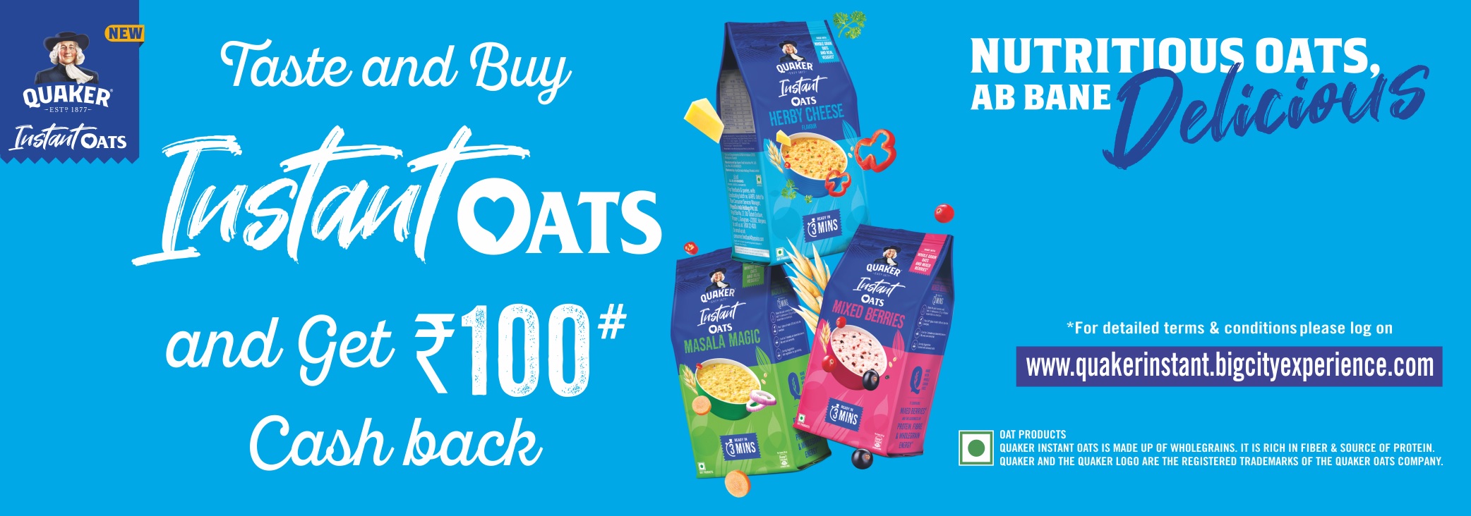 Contest Name : Quaker Taste & Buy Instant OATS Get Rs.100 Cashback Offer 2024