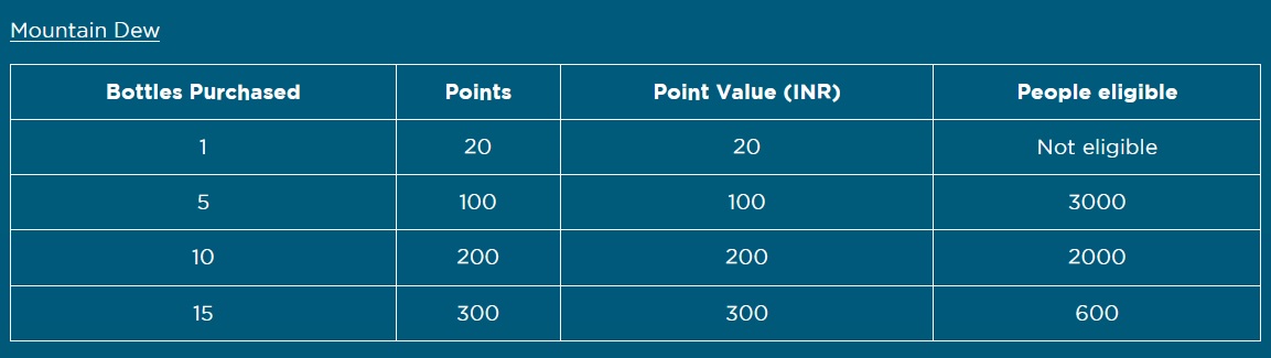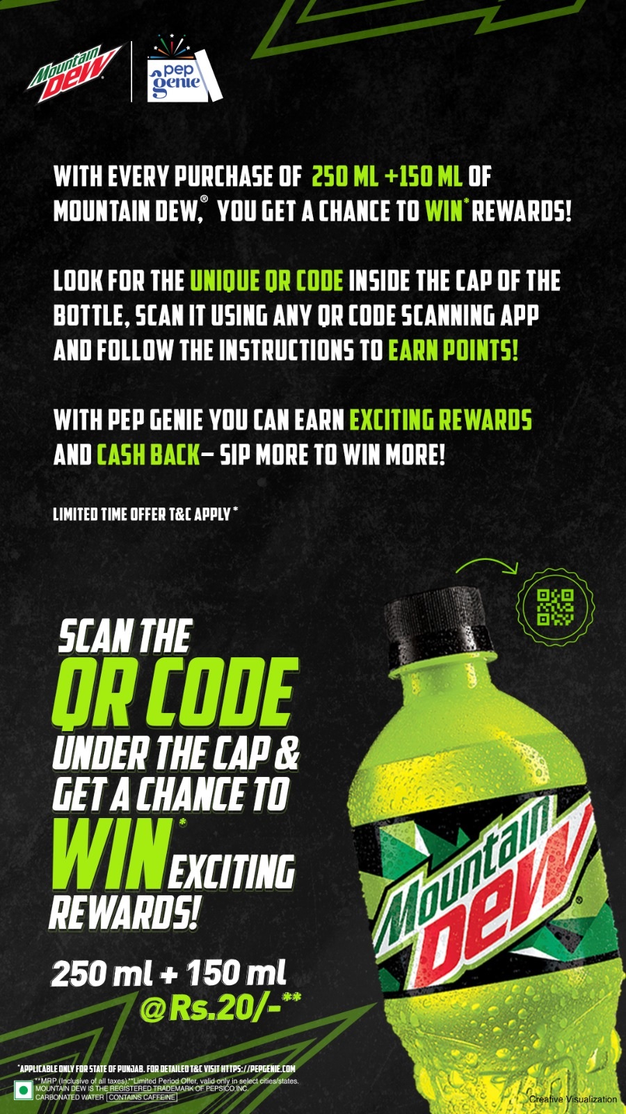 ** The Promo is applicable on 250 + 150 ml of Mountain Dew (‘Product’).