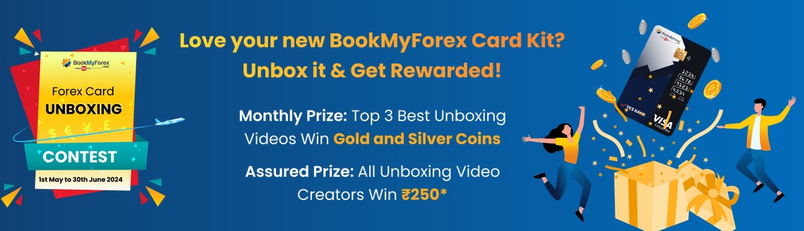 Forex Card Unboxing Contest 2024 is organized by BookMyForex, whose Instagram handle is @bookmyforex_, Facebook handle is @bookmyforex, Twitter handle is @bookmyforex, and YouTube handle is @bookmyforex6581. Grab your camera and be creative! Make a cool unboxing video of your BookMyForex Forex Card & share it on. Feel free to tag any of our social media handles or tag us on all of them to increase your chances of winning. The creator of the best video will receive a 2g gold coin worth ₹15,000. Every participant will get assured ₹250. Last Date of Contest is 30th June 2024.
