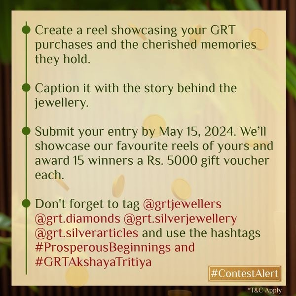 ** Participants need to make a video, share it, and comment with a heartfelt story about your GRT purchase using the following hashtags: #ProsperousBeginnings #GRTAkshayaTritiya
