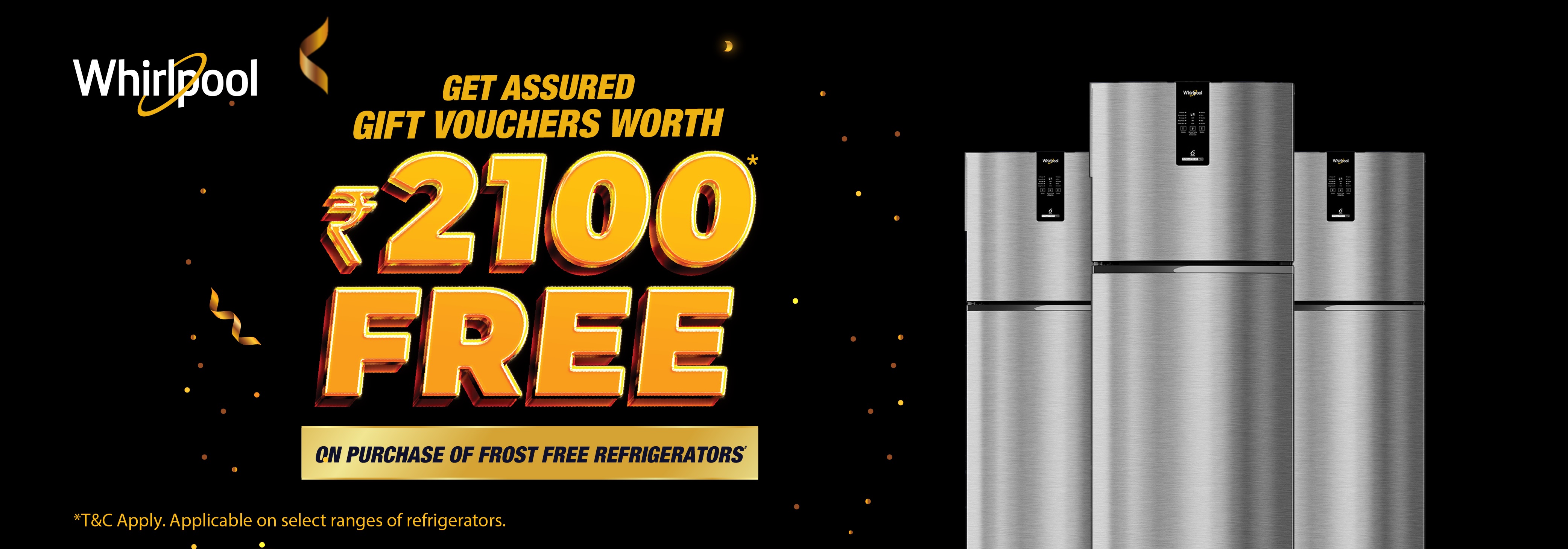 Whirlpool Assured Gift Vouchers Offer 2024 is sponsored by Whirlpool of India Limited and executed by Premier Sales Promotions Pvt. Ltd. Every purchaser of Products who is a natural person, individual and resident and citizen of India. The Offer is available on purchase of select models of Whirlpool Refrigerators with a capacity of 259L, 270L, 285L, 300L, 308L, 312L, 327L from select stores. Every Eligible Purchaser of a Product, will be eligible to receive assured gift vouchers worth INR 2100/-. Last Date of Offer is 15th July 2024.