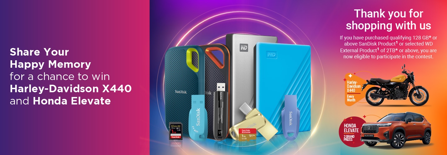 Share Your Memories Contest 2024 is sponsored by Western Digital UK Limited & administered by Adsyndicate Services Pvt. Ltd. The Promotion is open to all people residing in India. Participant must purchase any of the Eligible Products & scratch the sticker on the product packaging to obtain the promo code. Each scratch code can be used only once for submitting an entry for the contest. Last Date of Contest is 31st January 2025.