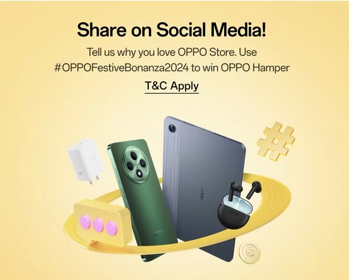** Tell us why you love OPPO Store. Share your story by using #OPPOFestiveBonanza2024 on social media platforms such as Facebook, lnstagram, X, etc., to win an OPPO Hamper.