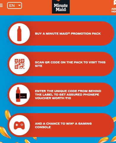 Minute Maid Pulpy Orange Promotion Contest 2024 is organised by Coca-Cola India Private Limited (CCIPL). The Promotion shall be valid for the individuals residing in India. The Promotion is applicable on the purchase of a 1 L pack of Minute Maid® Pulpy Orange brand only. Each Participant also stands a chance to win the Bumper prize only once under the Promotion duration. Last Date of Contest is 31st October 2024.