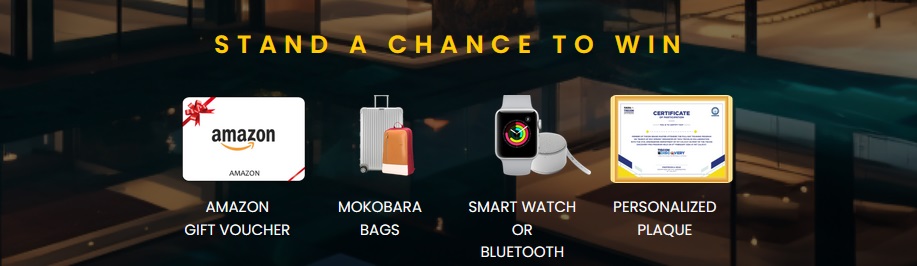 Prize : Stand a chance to win Amazon Gift Voucher, Mokobara Bags, Smart Watch (or) Bluetooth Speaker, Personalized Plaque