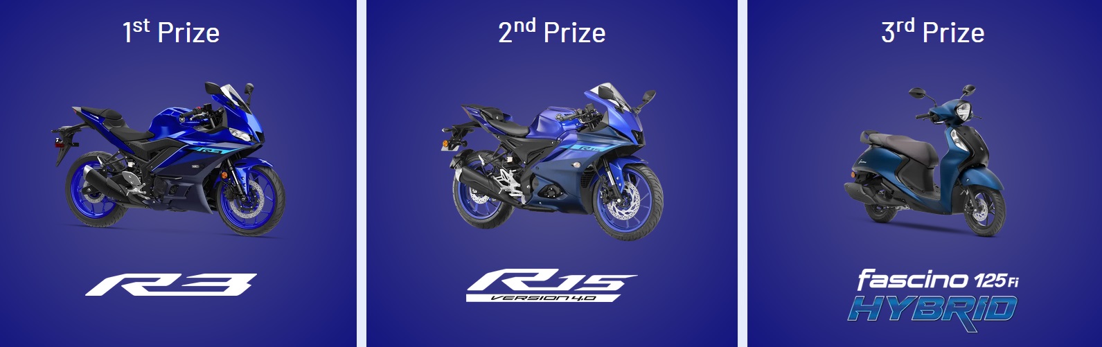 Prizes : Win Yamaha T-shirt and Yamaha Bike/Scooter