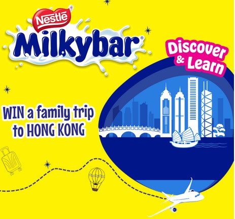 The Nestle Milkybar Consumer Promotion (Contest) is launched by Nestlé India Limited. This Program is valid in India. Participants must be citizens of India and must reside in India. Program only valid on NESTLE MILKYBAR® 22.g, 24g and 42g packs.The Prize for the contest is a voucher for a 3 days & 2 Nights Family Trip (2 Adult and 2 Kids above age of 2 years) to Hong Kong. Last date of contest is 31st March 2025.