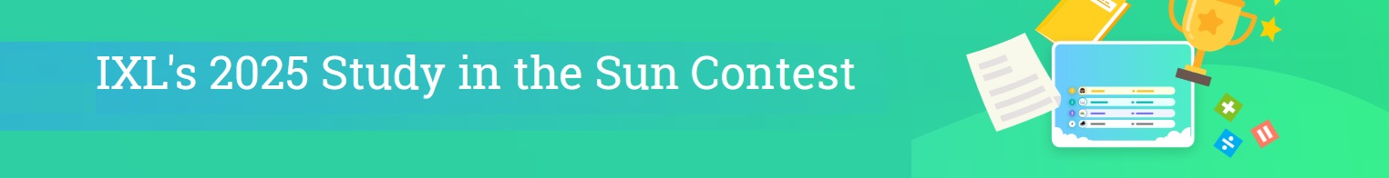 We are excited to host our annual Study in the Sun contest to encourage learning all summer long! The contest runs from 9 June to 3 August, and winners will be announced on the IXL Facebook page and the IXL Blog on 12 August. Students who answer 7,000 questions or more by the end of the contest will be entered into a random drawing for one of ten $350 VISA gift cards. Enter today for a chance to win!