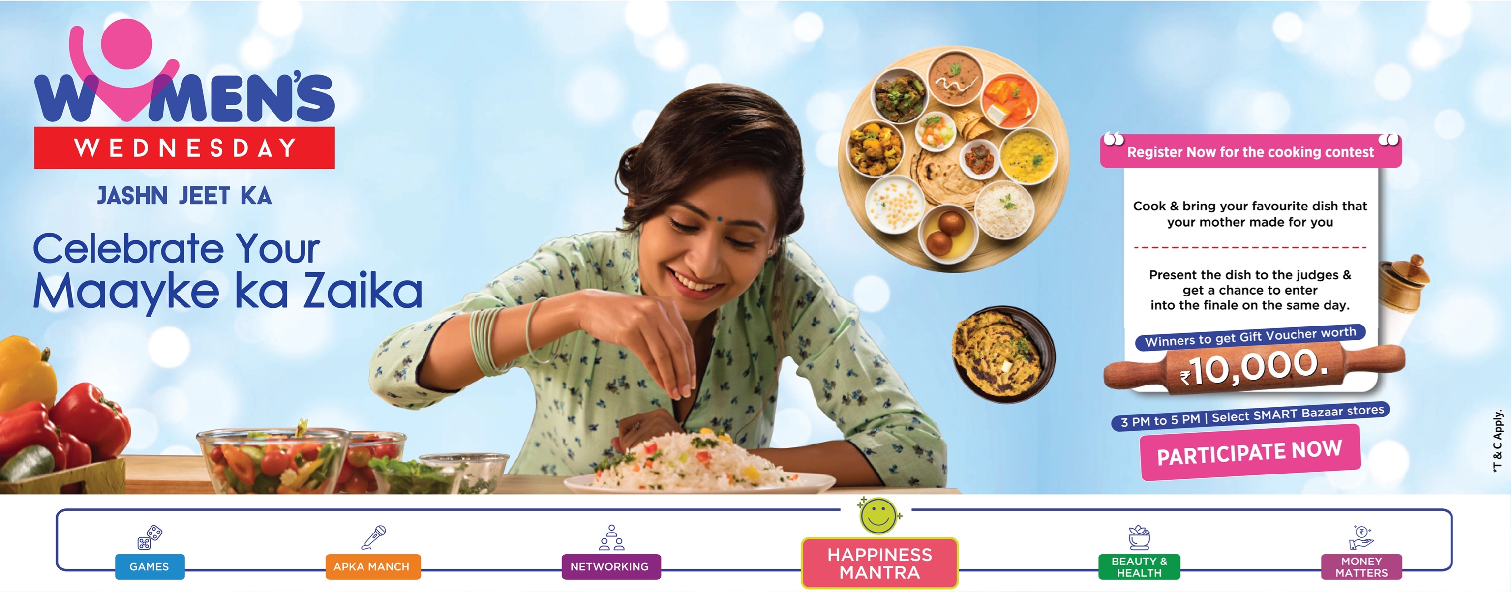 The Reliance Smart Bazaar Women’s Wednesday Cooking Competition is open to all the Indian citizens residing in India and above 18 years of age and who comply with the terms and conditions of the cooking competition.