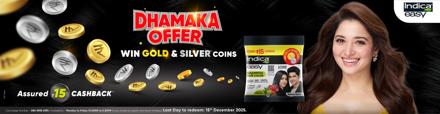 The “Indicaeasy & Win Contest” is a Consumer contest sponsored and organized by CavinKare Private limited. The contest is applicable for Indica Easy Natural Black 18ml wherein the participant shall participate by getting any pack of for Indica Easy Natural Black 18ml. Participants will get an assured cashback of Rs.15, 10gm Silver Voucher & 1 gm Gold Voucher. Last date of contest is 15th December 2025.