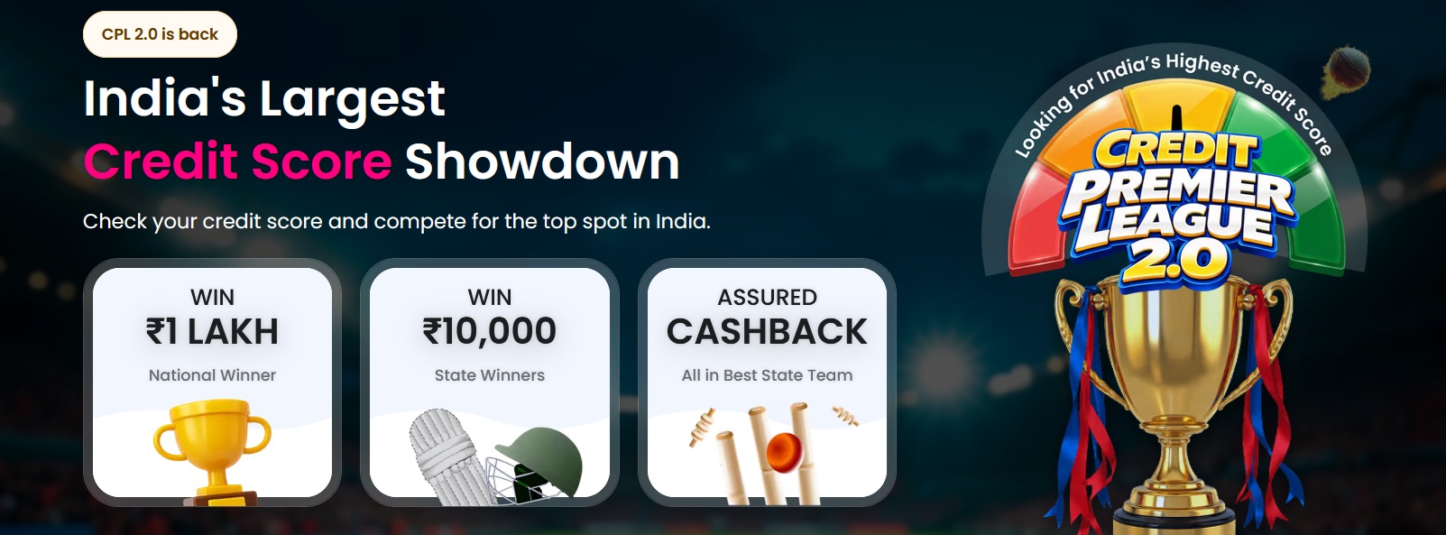 Paisa Bazaar Credit Premier League returns for Season 2 with bigger rewards and a chance to lead your state to the top of the leaderboard. This contest is open to Indian residents with a valid Paisabazaar account and a credit score above 300. Check your credit score and compete for the top spot in India.The highest score in India becomes the National Winner. The contest is valid from 28th March 2026 to 31st May 2026.
