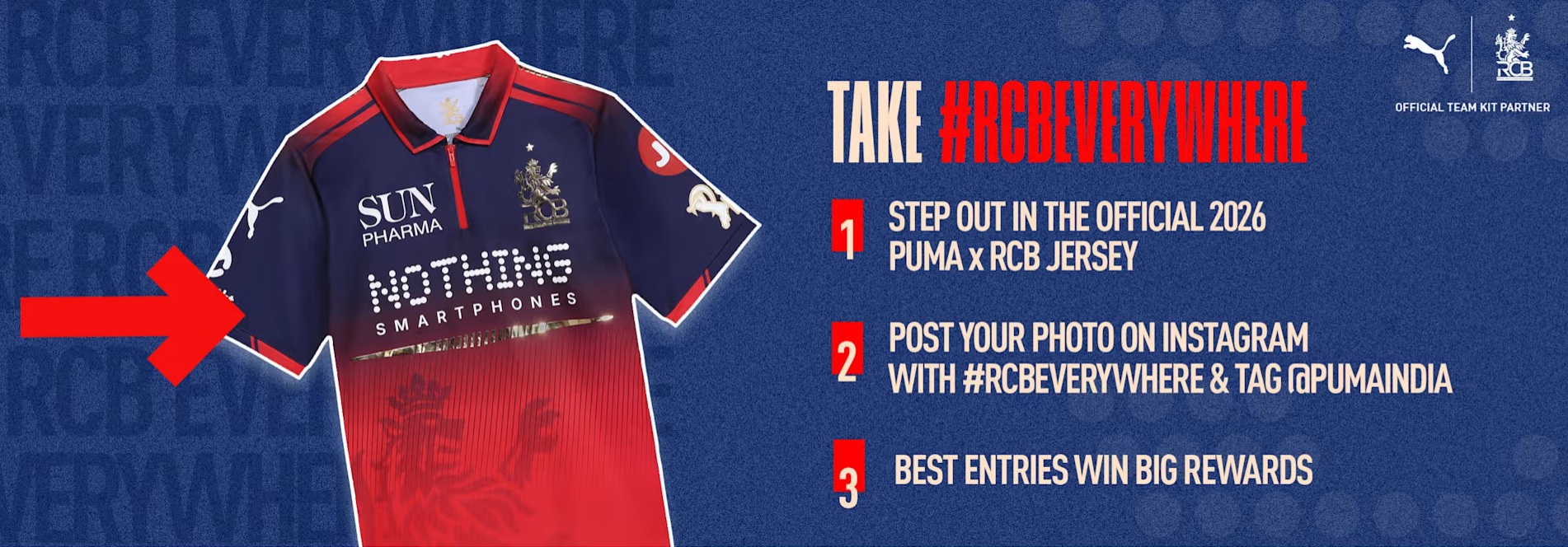 ** Only entries featuring the official 2026 PUMA x RCB jersey are eligible. No previous season jerseys, or non-PUMA RCB merchandise will qualify.
