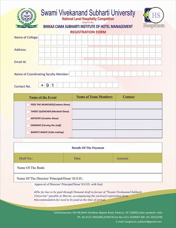 Bhikaji Cama Subharti Institute Of Hotel Management , Meerut (UP).